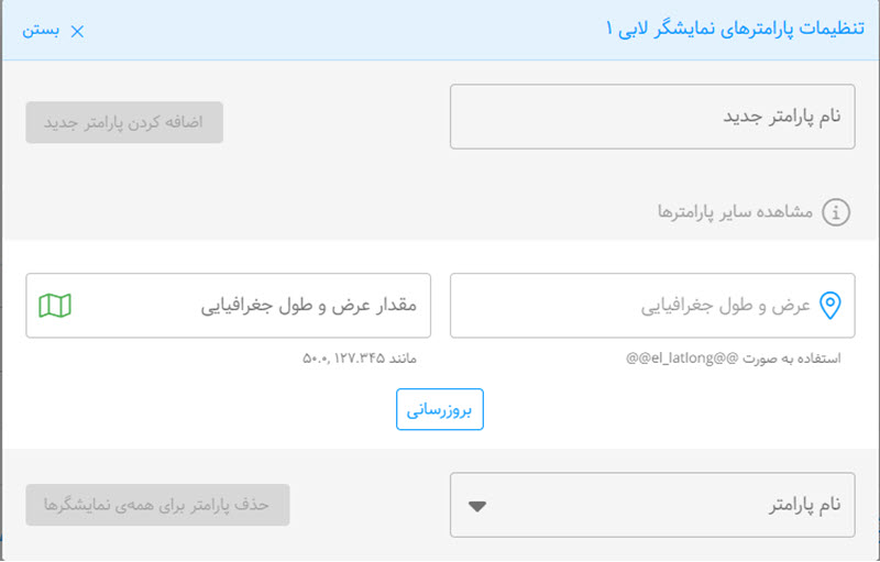 در لیست نمایشگرها با کلیک برروی آیکون پارامترهای نمایشگر میتوانید وارد پنل تنظیمات پارمترهای آن نمایشگر شوید.