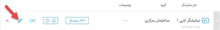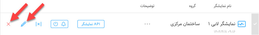 برای ویرایش و یا حذف یک نمایشگر از لیست نمایشگرها در پنل نمایشگرها میتوان مانند تصویر زیر اقدام نمود.
