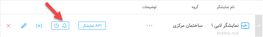 برای فعال کردن اعلانات یک نمایشگر میتوان از طریق کلیک برروی آیکون زنگوله در جدول نمایشگرها وارد پنل اعلانات آن نمایشگر گردید.