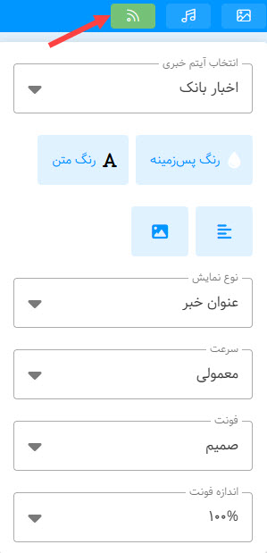 زیرنویس: عناوین اخبار به صورت زیرنویس نمایش داده خواهد شد. در این حالت تصویر پسزمینه اینفوآیتم به صورت تصویر جداکننده خبر عمل خواهد کرد.