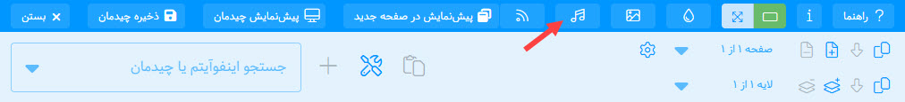 برای انتخاب پِلیلیست موسیقی یا صوت پسزمینه از این منو استفاده کنید. میتوانید از بین اینفوآیتمهای موسیقی که از قبل تعریف کردهاید، اینفوآیتمی برای چیدمان خود انتخاب نمایید.