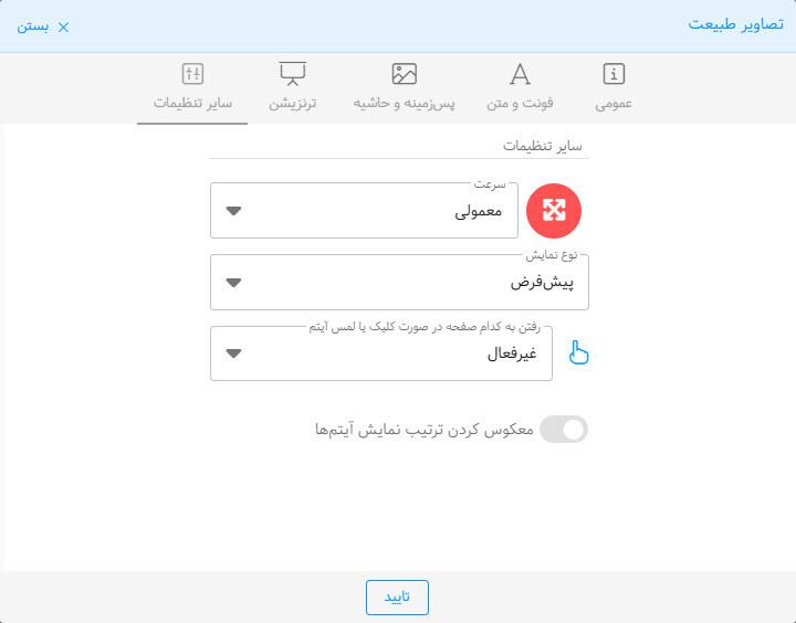 پیشفرض: تصاویر به صورت اسلایدر خودکار نمایش داده میشوند.