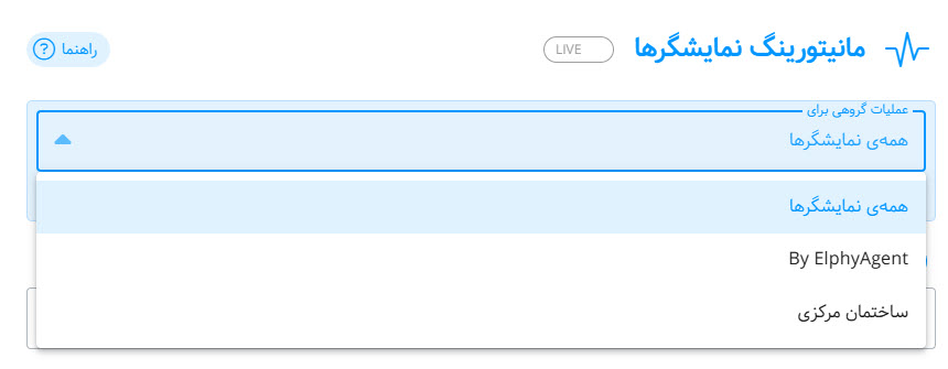 در صورت نصب بودن Elphy Agent اسکرینشاتهای نمایشگرهای ساینیج در پنل مانیتورینگ قابل مشاهده است.