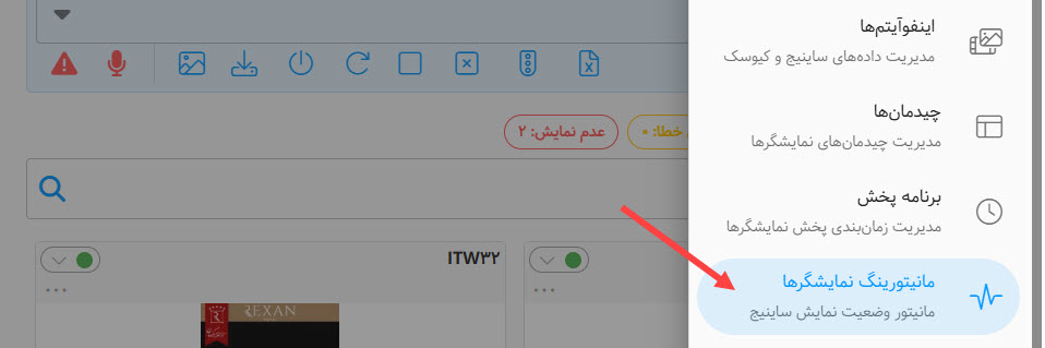 برای اینکه نمایشگر به لیست مانیتورینگ اضافه گردد، حداقل یکبار باید صفحه ساینیج روی آن نمایشگر باز شده باشد.