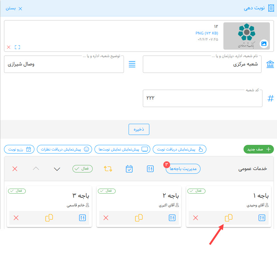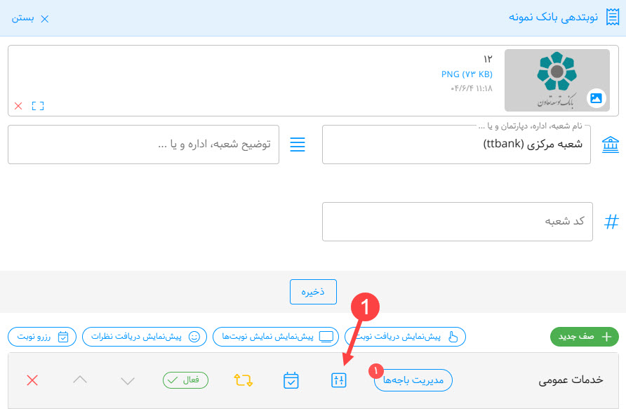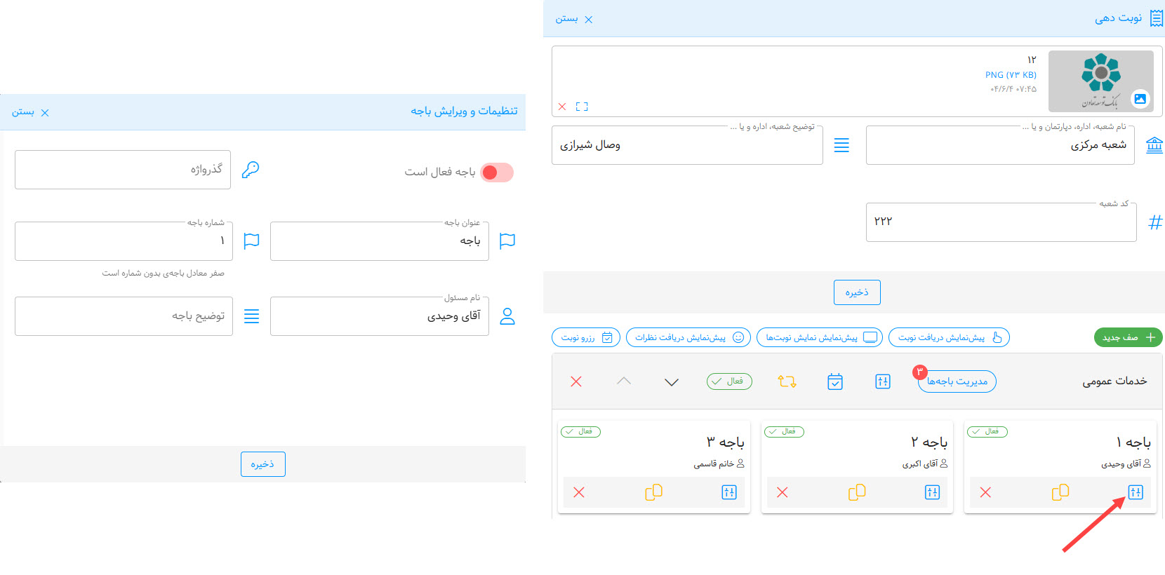 در بخش تنظیمات باجه، کاربر میتواند موارد زیر را مدیریت نماید: