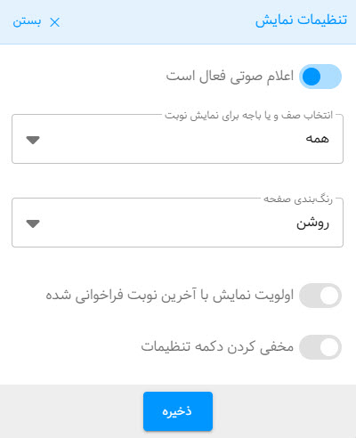 - فعال و غیرفعال کردن اعلام صوتی نوبت