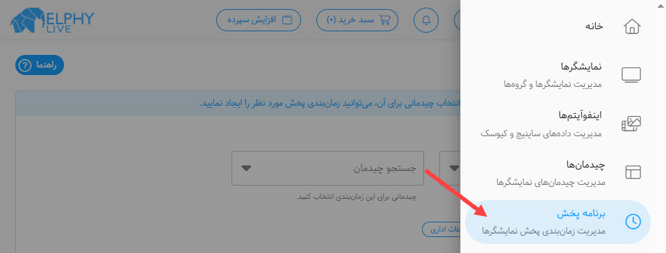 برای اینکه تعیین کرد که کدام نمایشگر یا گروه نمایشگر در چه بازههای زمانی باید چه چیدمانیهایی را نمایش دهند، از پنل زمانبندی باید استفاده کرد. این موضوع در مورد اپلیکیشنهای کیوسکهای لمسی نیز صدق میکند.