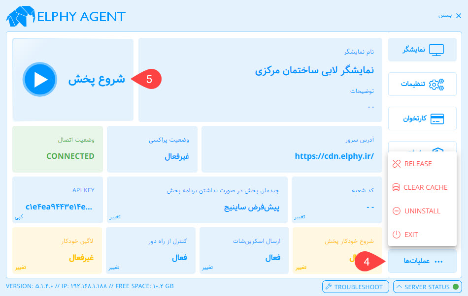 از این دکمه برای رفتن به صفحه تنظیمات Elphy Agent میتوان استفاده کرد.